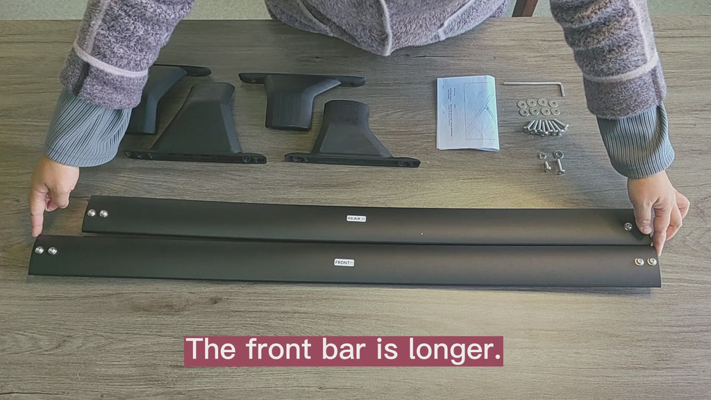 【Adjustable Length】By loosing and sliding the base to accommodate to your vehicle side rail. Labeled front and back so no guessing on which one goes where. The front crossbar is longer than the rear to accommodate vehicle size.