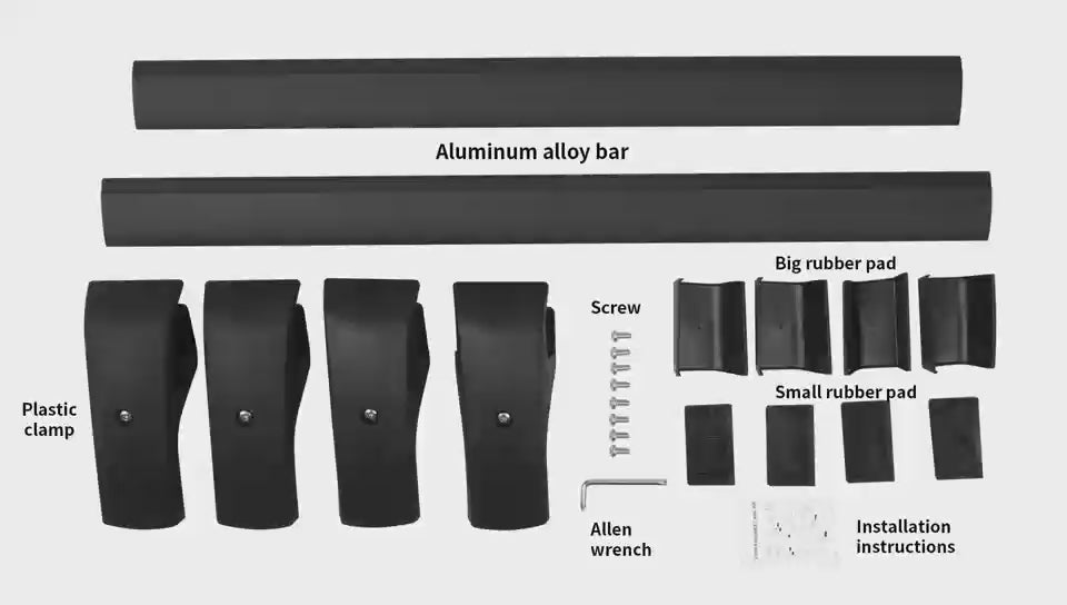 【Large Capacity】High-grade aluminum alloy can support luggage, ladder or cargo,roof rails can support a weight of 150 lbs (68 kg).Black Matte Powder Coated Aluminum cargo bars has a good anti-rust characteristic.
